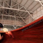 INDONESIA MAHOGANY as the main construction material of canoe selected by filtering the knot size, the color, and grain direction.
